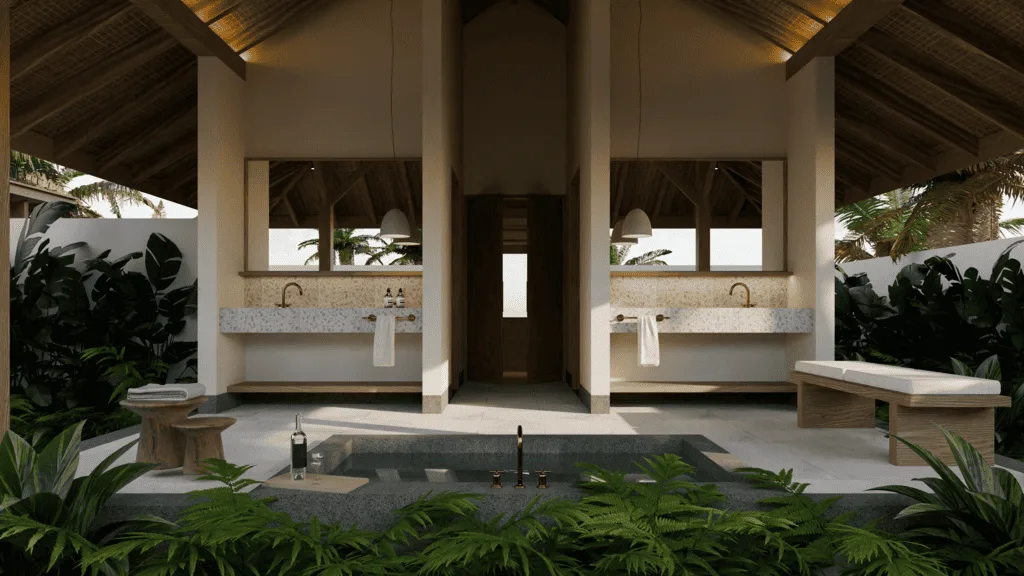 Upon entry, you’re greeted by an expansive open-plan living area, seamlessly blending indoor and outdoor spaces. Floor-to-ceiling windows flood the room with natural light, offering breathtaking views of lush gardens. The chic, contemporary décor is complemented by premium furnishings, creating an atmosphere of relaxation and refinement.